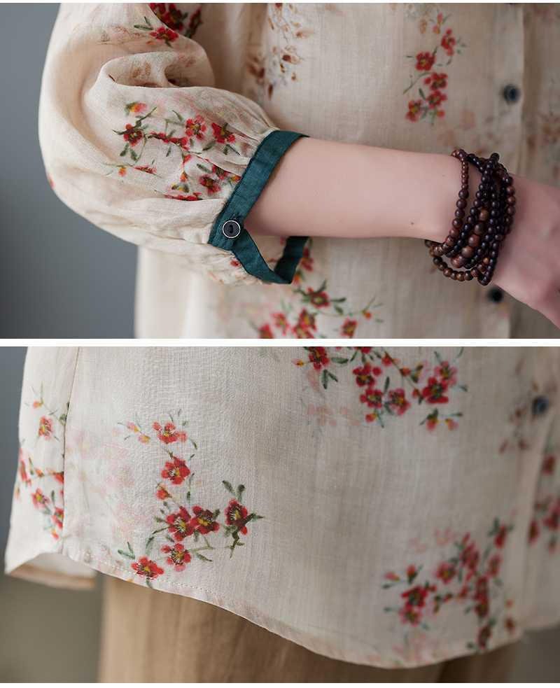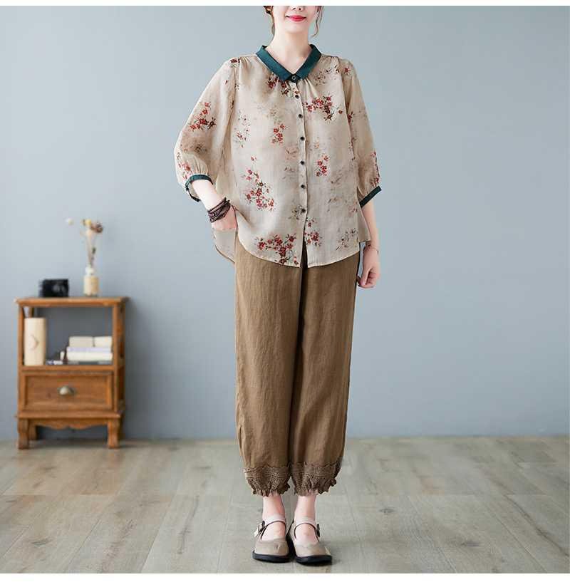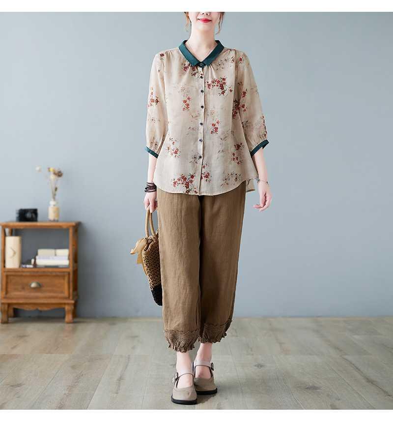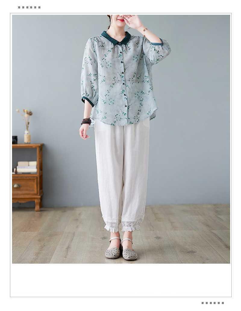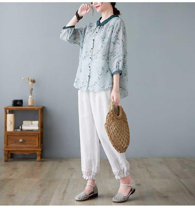 면마 프린트 셔츠 뚱뚱이 여동생 빅사이즈 여성복 칠부소매 셔츠 넥 감령 상의