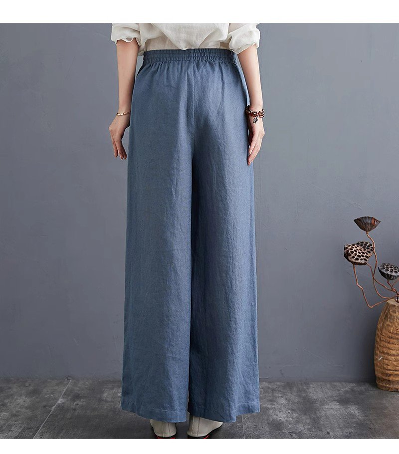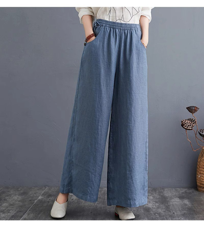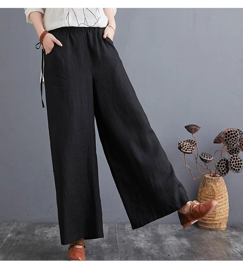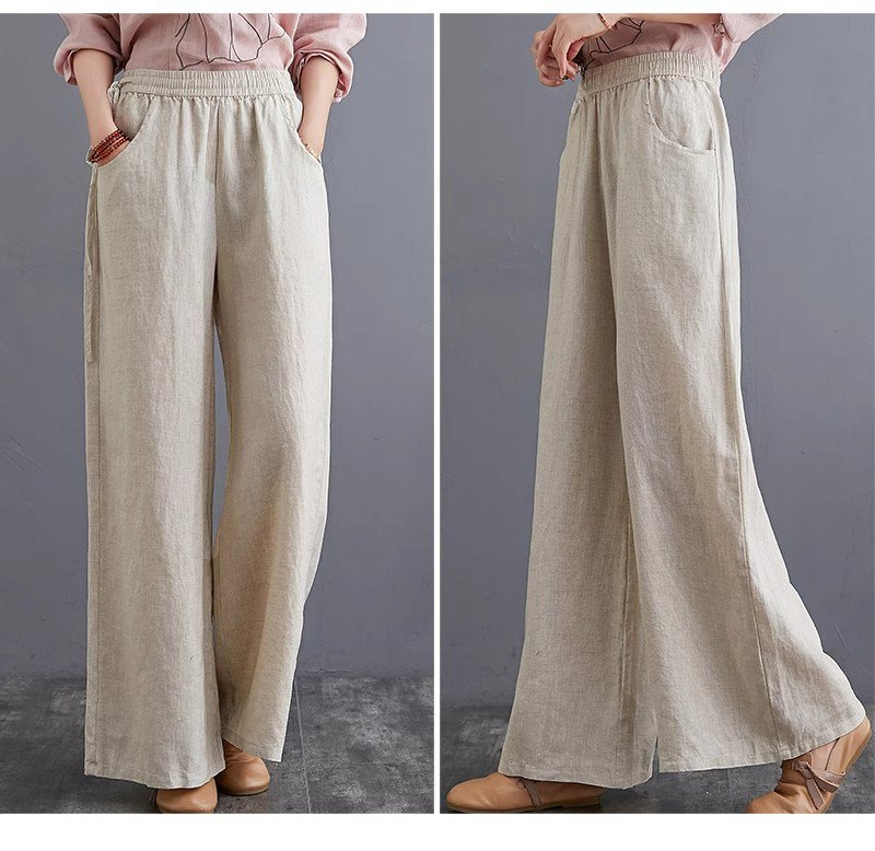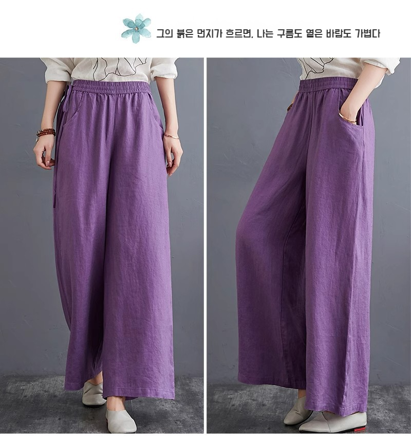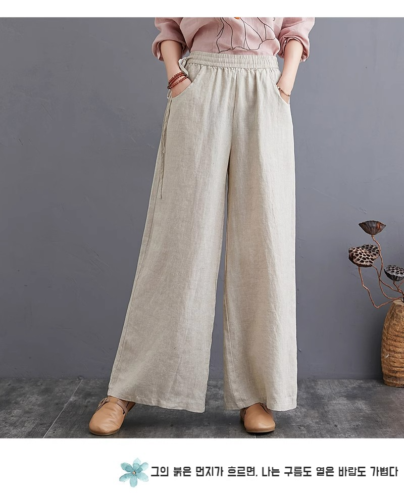 하이웨스트 캐주얼 와이드 팬츠 드롭 와이드 린넨 와이드 팬츠녀