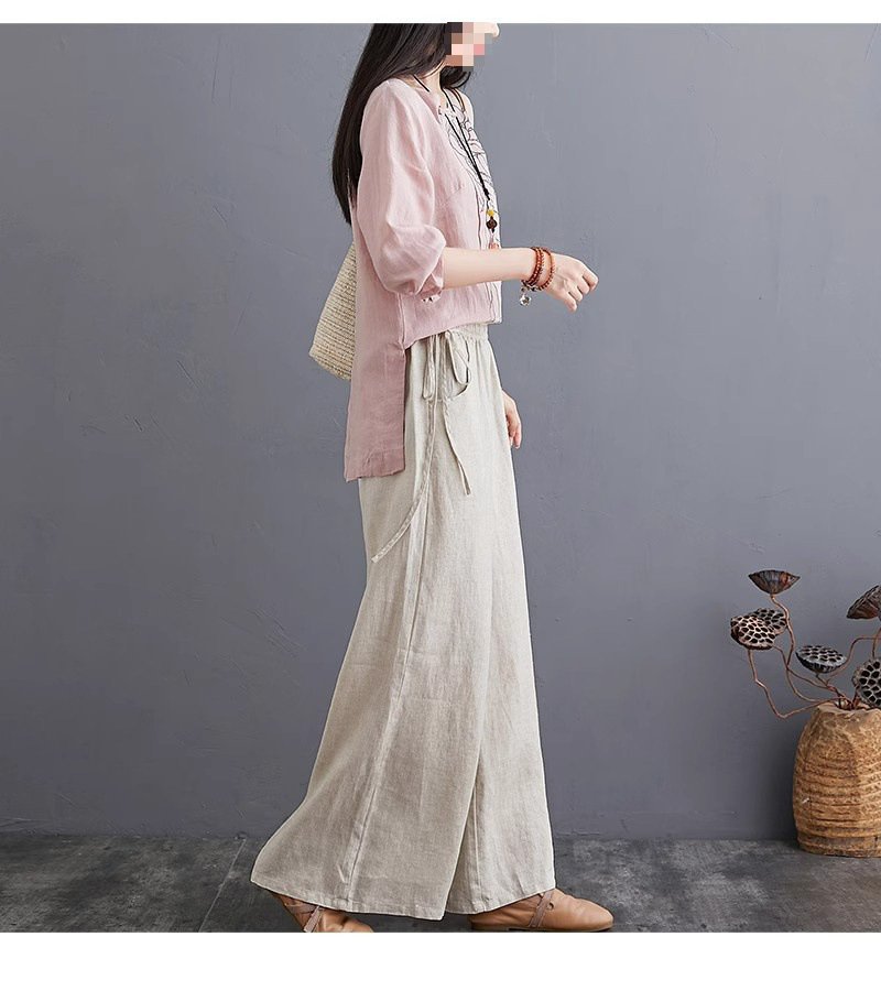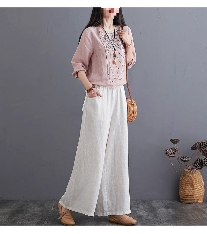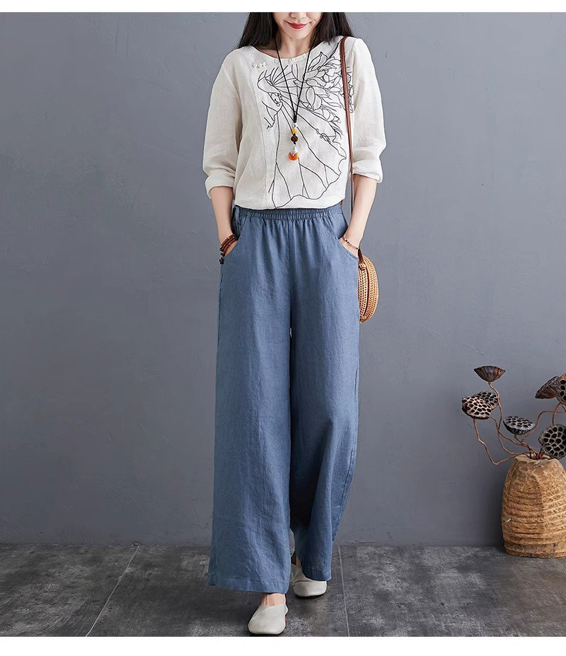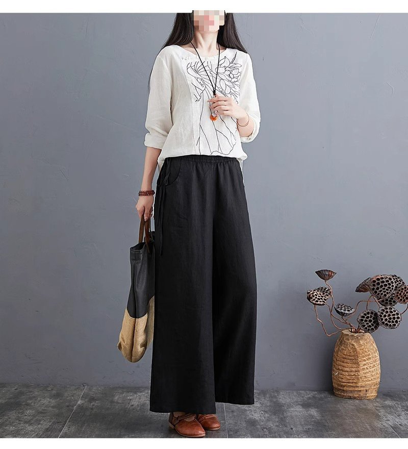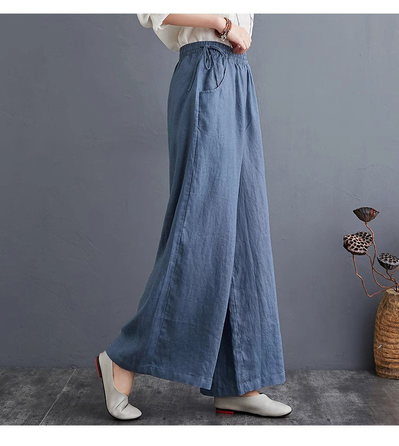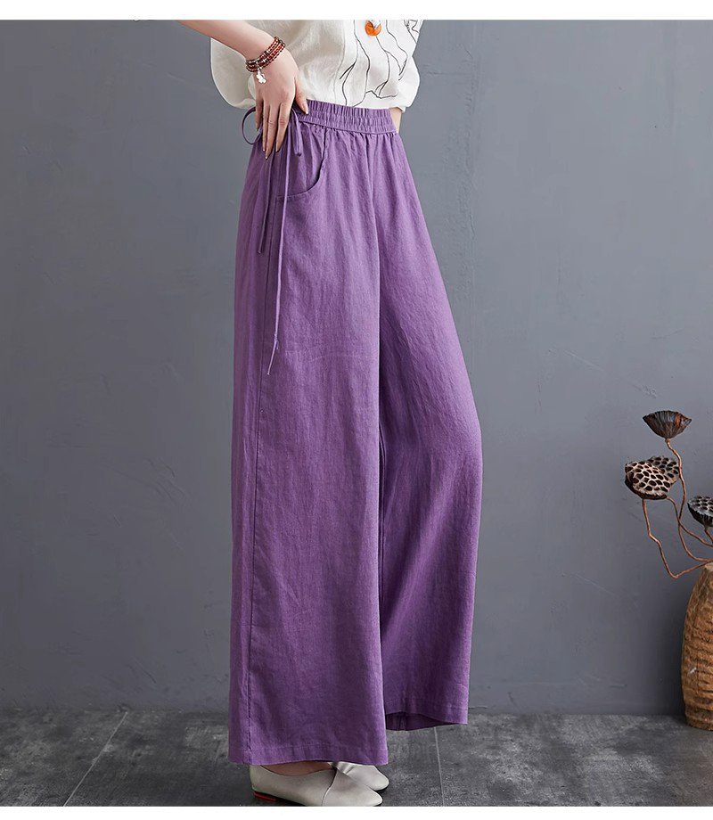 하이웨스트 캐주얼 와이드 팬츠 드롭 와이드 린넨 와이드 팬츠녀