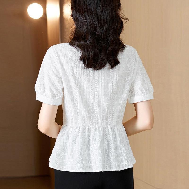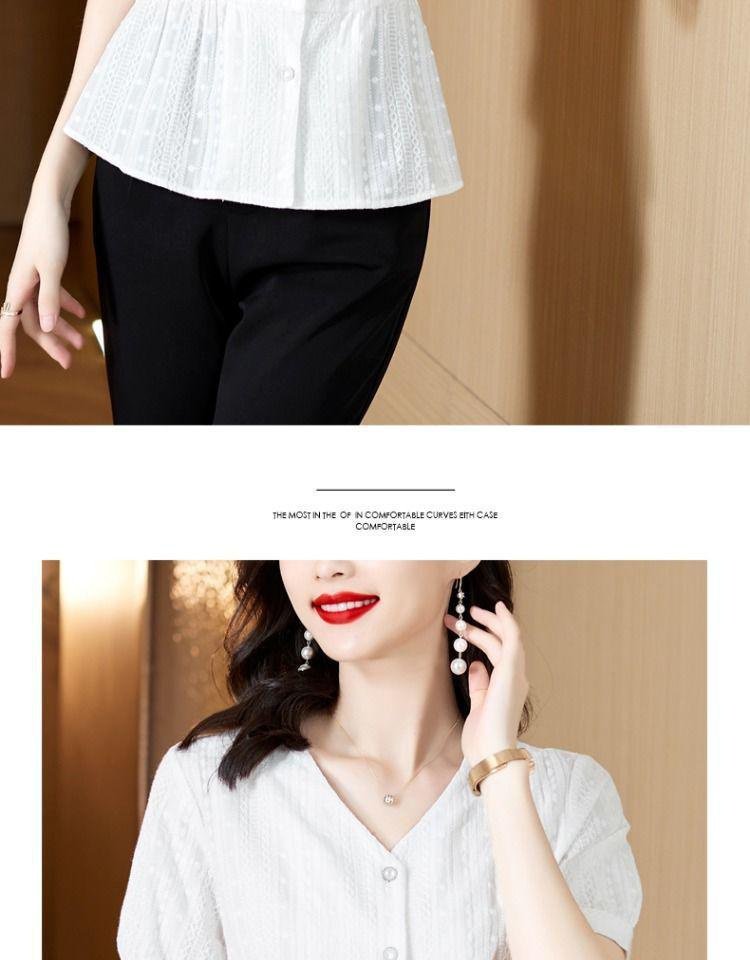 여름 신상 패셔너블하게 배를 가리는 중년 엄마 허리띠를 줄여 날씬해 보이는 블라우스녀